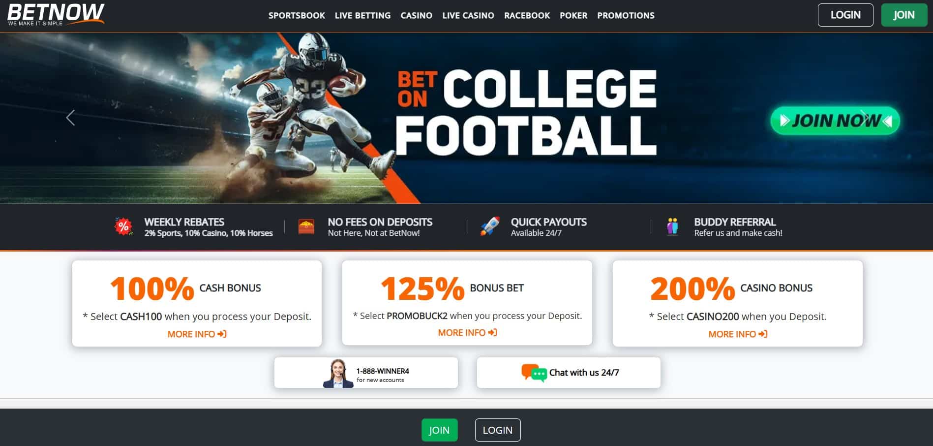 BetNow targets US players who use offshore options for Texas sports betting, with a strongly US-focused lobby covering NFL, NBA, college sports, live betting and a full racebook. Odds are solid and the overall market depth works well for casual and semi-serious bettors. The welcome bonus is attractive, but higher rollover clearly favors regulars over pure bonus hunters.